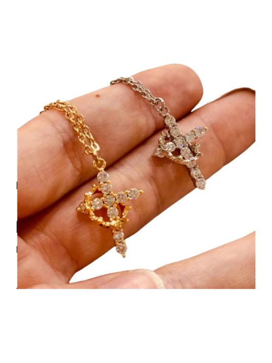 Cross Crown Pendant Necklaces For Women Vintage Gold Silver Color Chain Jewelry Gifts